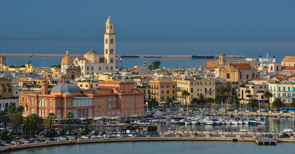 Bari è la città capoluogo della Puglia, una regione del Sud-est Italia che, grazie alla sua felice posizione geografica di penisola protesa verso Oriente, rappresenta un crocevia strategico nel bacino del Mediterraneo. Negli anni, la Città ha costruito legami ed incoraggiato nuove forme di collaborazione, partecipazione e cooperazione, sia verso i Paesi vicini del Mediterraneo e dei Balcani, sia verso le mète più lontane.